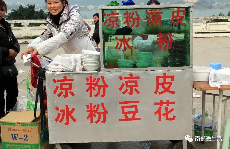 川北凉粉是出名风味小吃。凉粉关键是一个“凉”字,但现在小吃老板还做出了“热凉粉”。