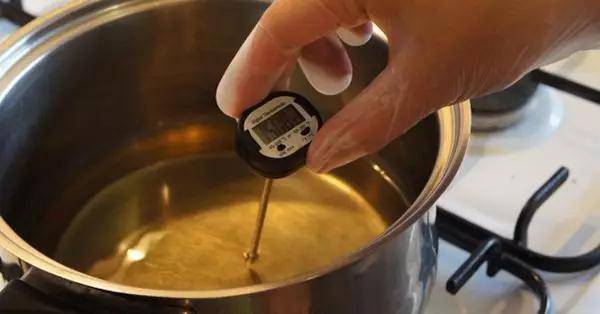 如果油温太高,会使食物外面炸焦,里面还没熟。如果油温太低,就会延长油炸时间,让食物吸收更多的油,而且容易脱糊(外面裹的糊会脱落)或者粘锅。因此,油炸温度以油五六成热时为佳,大约为140~180摄氏度,这个时候油面波动,略有少量青烟升起。