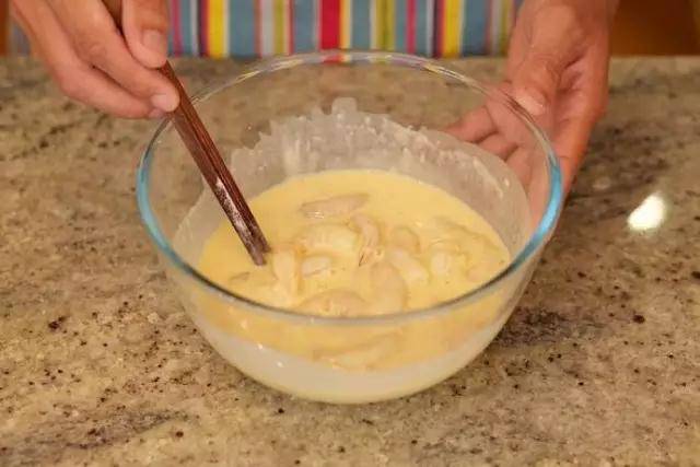 给原料挂上糊后,糊粉受热,会立即凝成一层保护层,使原料不直接和高温油接触。这样就可以保持原料内的水分和鲜味,营养成分也会减少流失,制作出的菜肴就能达到松、嫩、香、脆的目的。挂糊时,用淀粉调的糊比用面粉调的糊所吸收的油少,炸出的菜肴更加酥脆。但淀粉糊一定要调匀,如果有未调开的淀粉疙瘩,在炸制时容易迸爆,油会溅出锅外,导致烫伤。