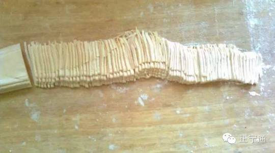 在案板上,面团卷在擀面杖上,不停的推、拉、擀,反反复复,来来回回,擀的是面,真真反应的是正宁妇女的踏实与韧劲,淳朴与巧道。