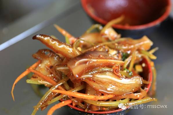 大家都知道凉拌菜红油是最重要的,严太婆锅盔肉类的锅盔中以凉拌菜为主,但都加入了莴笋、黄瓜等现拌好蔬菜,红油的味道在锅盔面粉和蔬菜肉类综合在一起,不干涩不油腻,比例刚刚好。