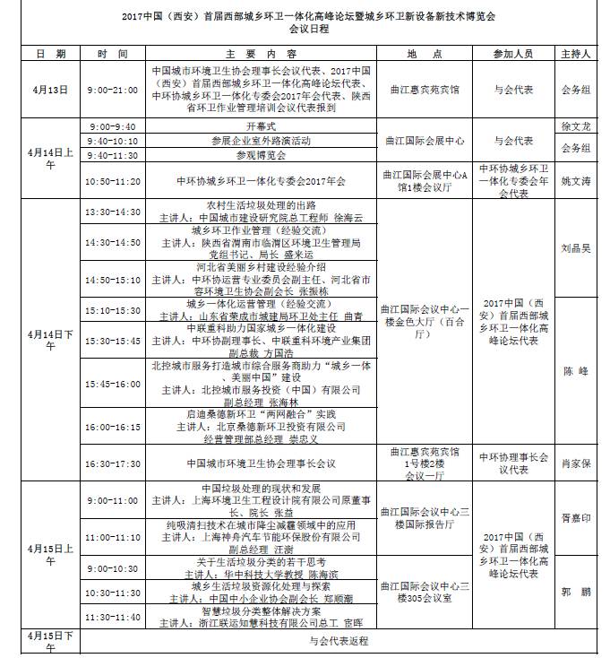 除此之外,中国城市环境卫生协会将召开城乡环卫一体化年会,而中国城市建设研究院也将派代表分享“农村生活垃圾处理的出路”议题,陕西、河北、山东地区等各地环卫部门也将分享城乡环卫作业管理、美丽乡村建设和城乡一体化运营管理的心得体会。
