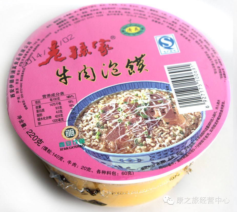 “老孙家”羊肉泡馍荣获“国际名小吃”称号,被宾客誉为“天下第一碗”,为西安清真饮食文化代表之一。现在,康之旅老孙家方便羊肉泡馍走进了高铁列车。它秉承传统工艺,融入现在食品加工技术,既保持了羊肉泡馍的营养和风味,又便于携带和食用,是您旅游和馈赠亲朋好友的佳品。