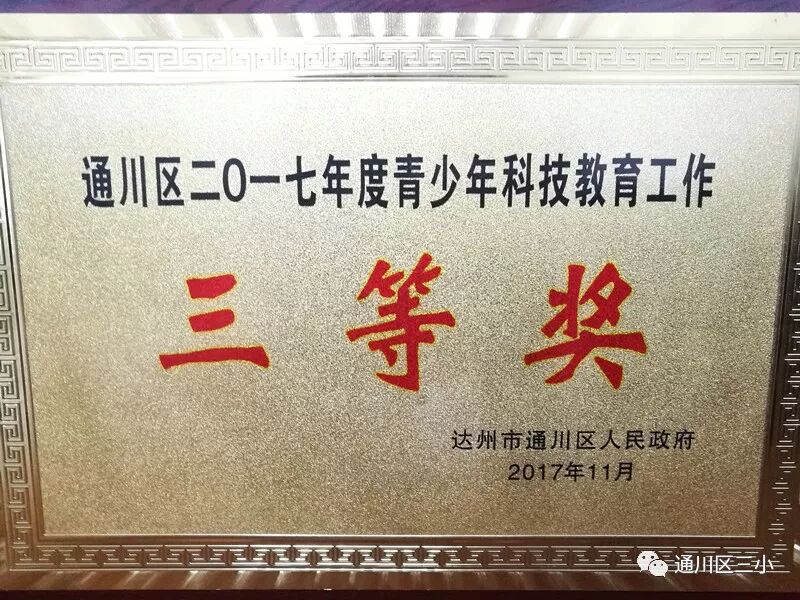 (七)、2017年11月获得通川区人民政府颁发的青少年科技教育三等奖。