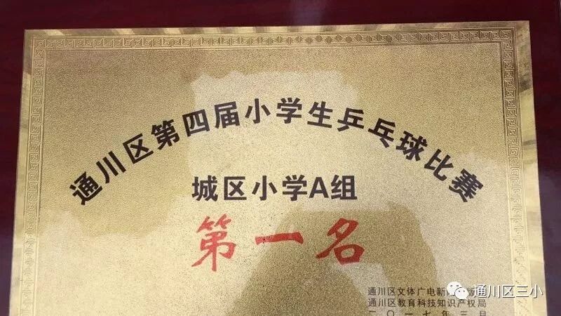 (二)、2017年5月获得通川区教科局颁发的通川区第四届小学生乒乓球比赛城市小学A组第一名。