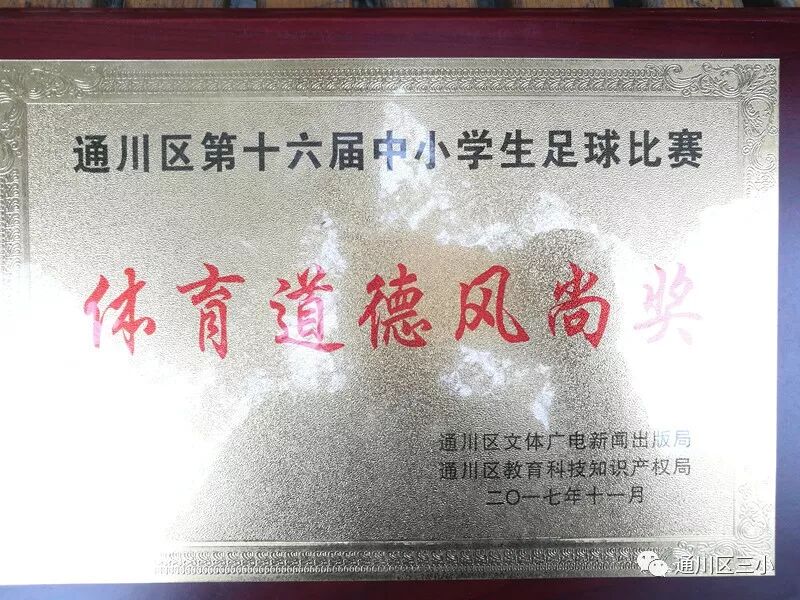 (六)、2017年11月获得通川区教科局颁发的通川区第十六届中小学生足球比赛体育道德风尚奖。