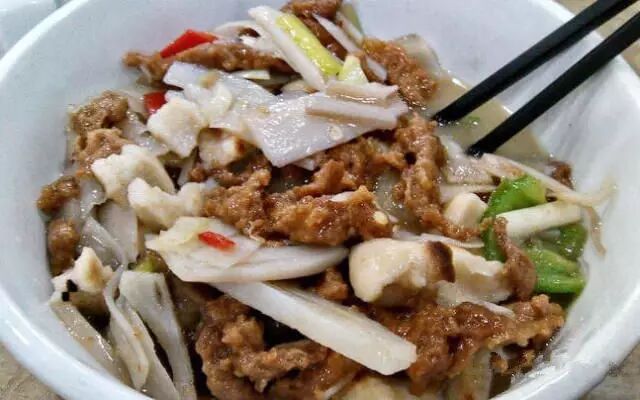 和牛羊肉泡馍不是一个味道,更和葫芦头有区别,炒肉片煮馍里面放的是莲菜和猪肉片。