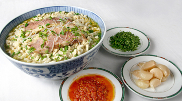 跟牛羊肉泡馍、葫芦头泡馍、小炒泡馍齐名的三鲜泡馍(也叫三鲜煮馍),口味相对比较清淡。