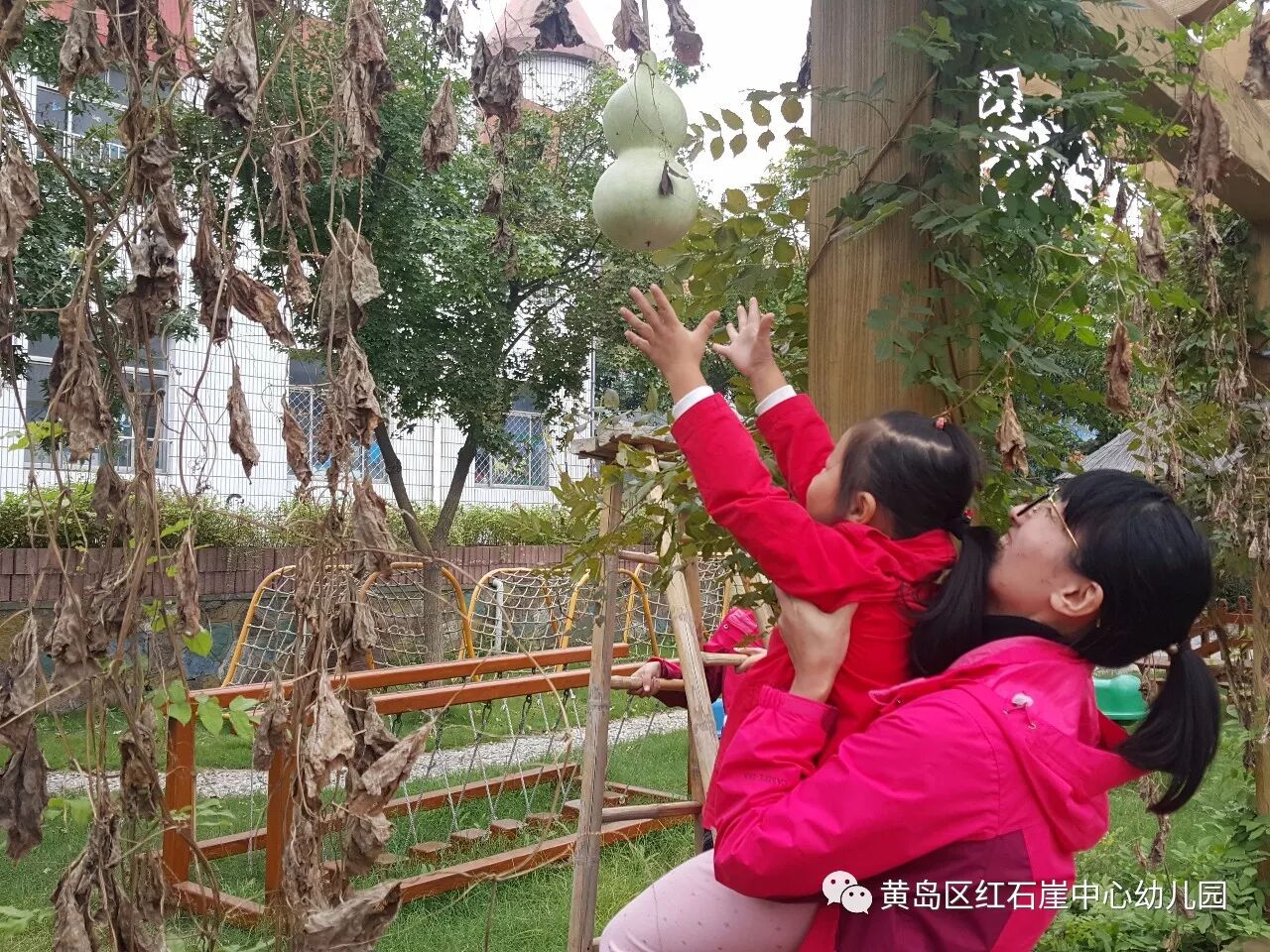 动手摘葫芦更是孩子们乐此不疲的事情,葫芦还真不好摘,需要用点力气哦!高处的葫芦需要架起梯子,或是在老师的帮助下才能摘到。