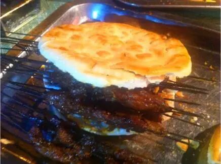 夜市上滴烤油馍吃腻了,来个烤干饼加烤肉。