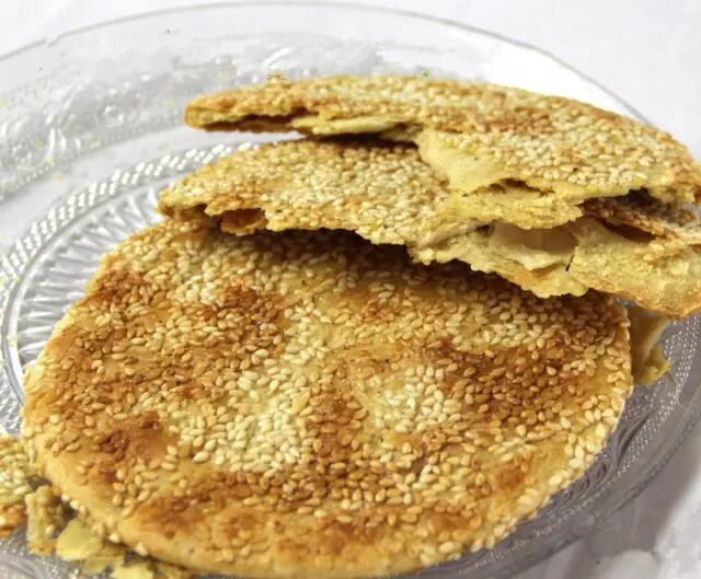 在烙馍时这一转二翻三挠可是很重要的:一转就是要不停的对饼转动以防止焦糊的现象,二翻就是一面考好再翻过来考另一面,三挠差不多好的时候挠一挠听听动静要是轻脆的声音那证明已经好了,然后撒点芝麻粒就可以出锅了。