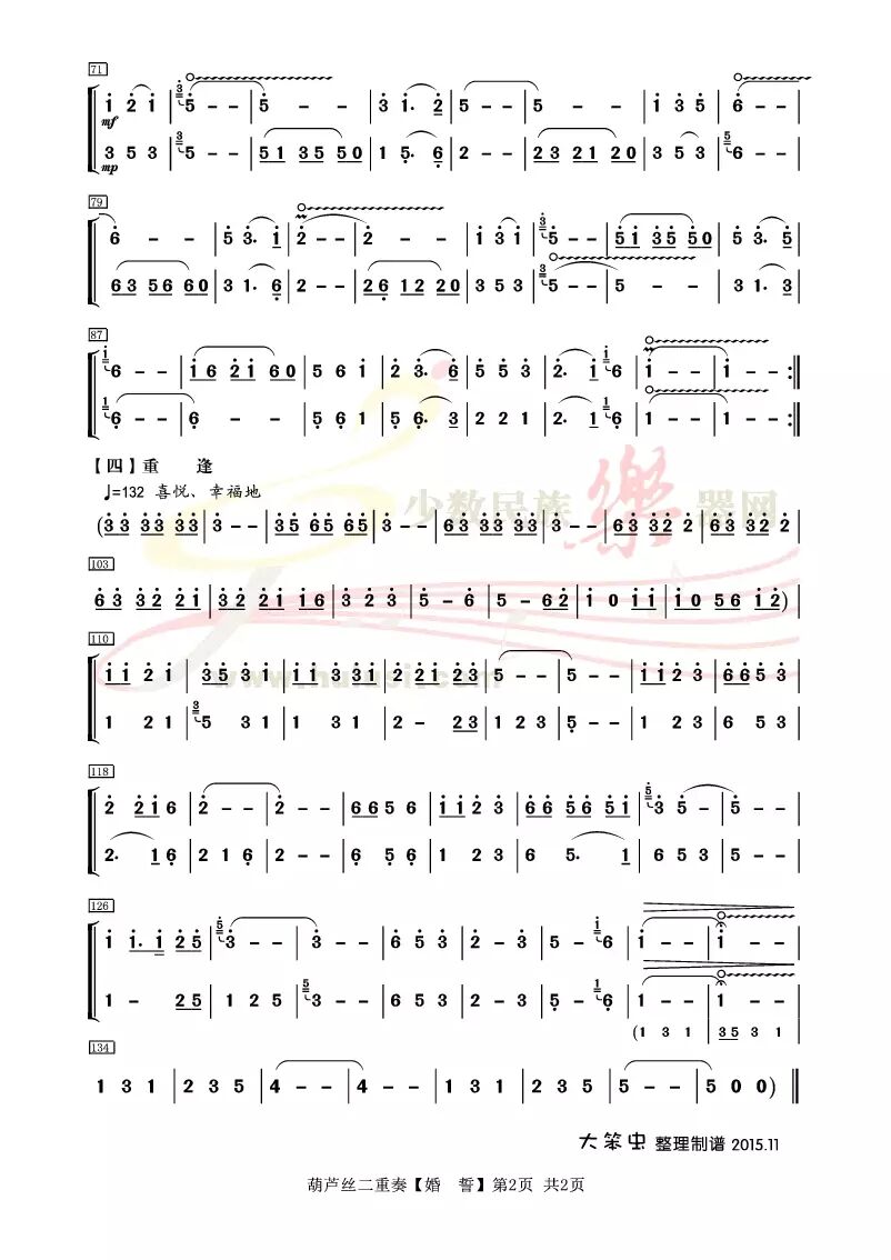 我们参照张老师的意见,将此曲编为四个乐段:相恋、相聚、相思和重逢,全曲都采用筒音作5指法,难度适中好学易吹,适合中老年朋友们凑到一起自娱自乐及组织编排演出。