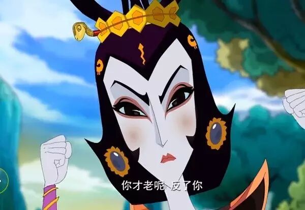 接下来,就是超级大反派蛇精,等一下,这下巴也太尖了吧: