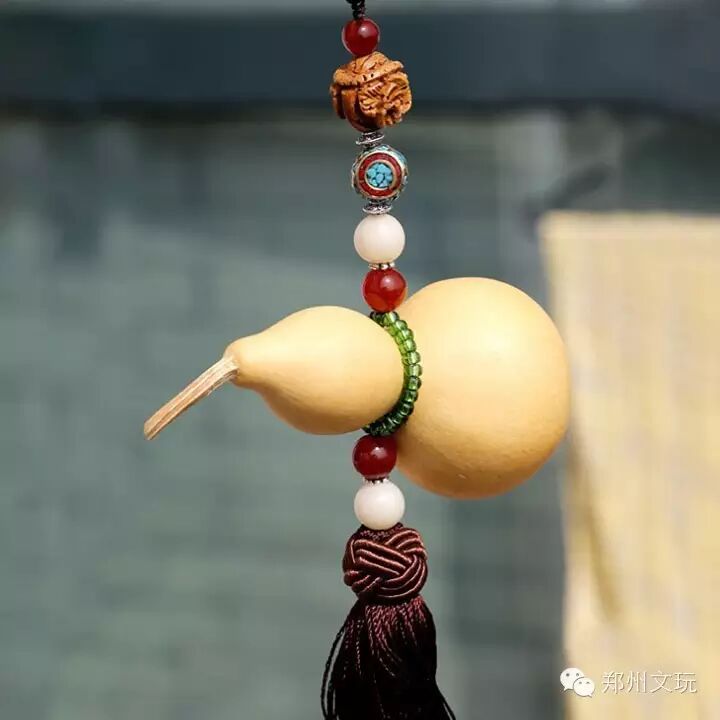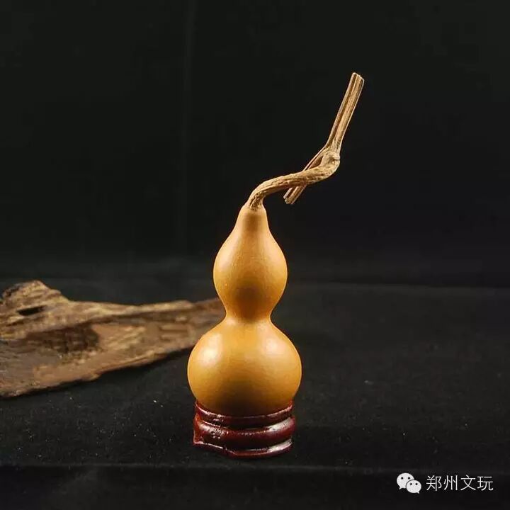 如何挑选手捻葫芦?前提当然是形状要好看,挑选时,以摸在手里圆润光滑、坠手为佳。行话讲“瓷皮糠里”,说的是表面瓷实,内里像海绵垫一样有弹性,皮色要像水一样净,俗称“一汪水”。皮色惨白的葫芦肯定用药水泡过,不能要,没有动过手脚的葫芦应该有自然的香气。
