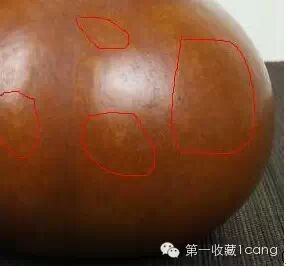 葫芦表面的大片的霉变:这是葫芦的毛病。新葫芦在没有完全晒干的时候,遇上水,葫芦表皮就会出现块状的阴皮,这是一种霉变,成块状。不过经过盘玩后,也不会太明显。