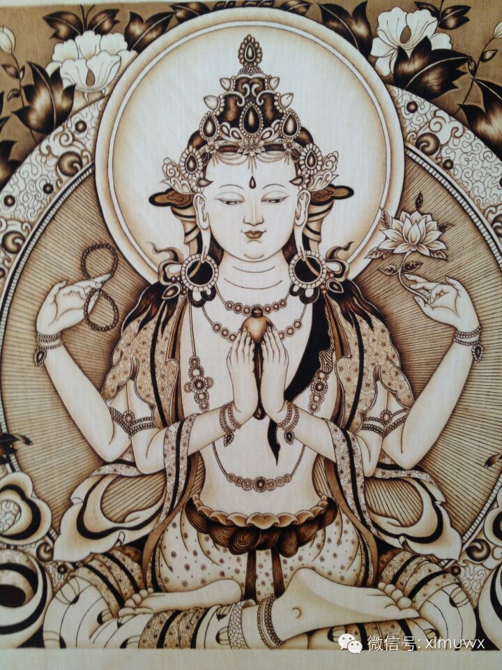 张佳音(微信:zjy2427631),女(1991.8)辽宁抚顺人,纯艺专业,2012年大二期间开始研究烙画至今,擅长人物、虫草以及与现代美术结合的小作品,深受大众喜爱。主要代表作《花开富贵》、《四臂观音