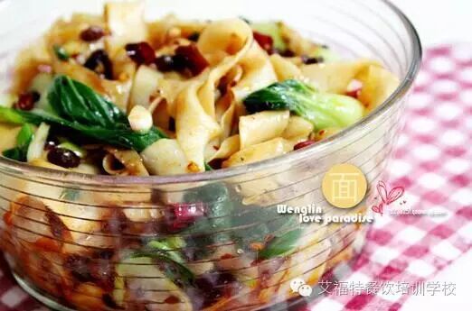 材料宽面条,油菜,香葱,干辣椒,油,盐,味精,生抽,老抽