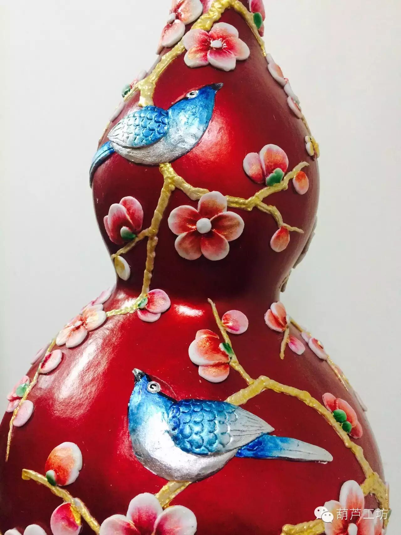 堆彩浮雕工艺葫芦最新款:喜上眉梢