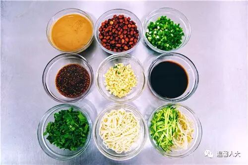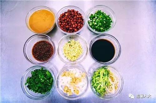 凉皮和凉面制作过程精妙,在配料选择上尤为严格,一般有麻酱、花生、葱、辣椒油、蒜、醋、香菜、黄瓜、豆芽等近十种配料。