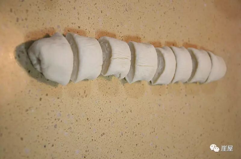 3、把发酵好的面团搓成长条,分成八等份,搓圆备用;