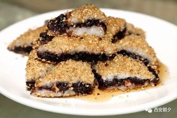 外面裹一层芝麻,中间加豆沙馅,跟蜂蜜凉粽子一样都是用江米做的