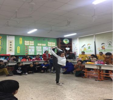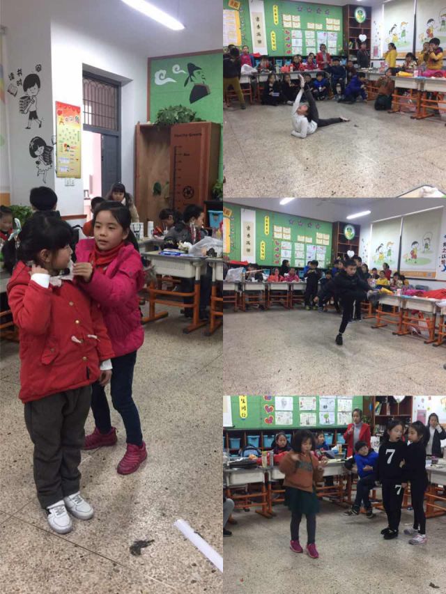 表演的同学也拿出看家本领。同学们有的表演唱歌,有的跳街舞、伦巴,有的打武术,还有的说快板……还有许多小游戏,掌声一片又一片。
