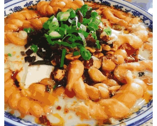 豆花很鲜嫩,饼片久煮不散,豆浆香醇,味道很厚重。脆麻花、榨菜碎、花生碎、黄豆……再来一勺油泼辣子,香喷喷的一碗看着都食欲大增,吃起来更是满足。