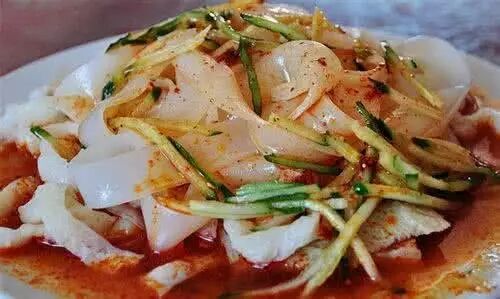 米皮一般稍厚些,所以切得也就细点,吃起来口感更有嚼劲儿。