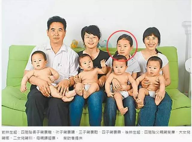 还有一件不得不提的事情是,,一张由受访者一家提供的照片显示,除了大姐和四个男孩外,他们家其实还有一个名叫蒋圳的“二女儿”。