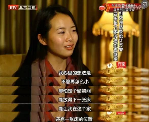 姐姐希望能有一个自己的房间,哪怕只是一张床。设计师的搭档听到姐姐的要求后,有些不满,拂袖而去。
