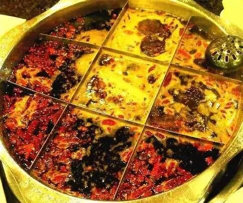 重庆九宫格锅底,一小格底油的热量差不多100卡。