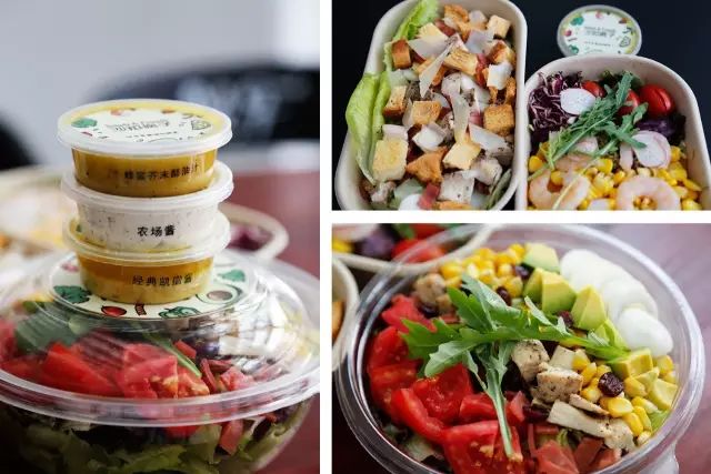 这是一家配送到手的沙拉店--沙拉疯子,外送包装简单便捷,可通过官方微信订购,也可以到实体店用餐。沙拉分量非常惊人!这道经典科布沙拉里有综合生菜、番茄、鸡蛋、鸡腿、玉米、牛油果,还有几颗点缀的干果。一盒吃完热量也很低,值得推荐!