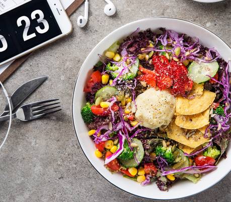 这是一家配送到手的沙拉店--沙拉疯子,外送包装简单便捷,可通过官方微信订购,也可以到实体店用餐。沙拉分量非常惊人!这道经典科布沙拉里有综合生菜、番茄、鸡蛋、鸡腿、玉米、牛油果,还有几颗点缀的干果。一盒吃完热量也很低,值得推荐!