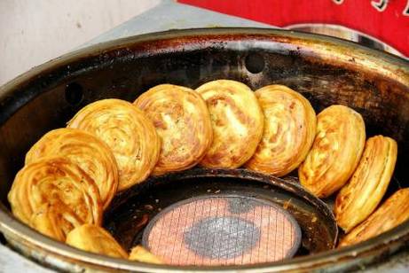 以香、酥、脆、细嫩化渣而名扬川西的军屯锅盔,也是成都人民最爱的街头小吃之一!但因为是油煎炸制成,卡路里含量也是超高的!