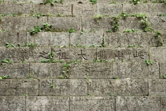 出隧道正前方石壁上,横刻“此山明太祖之墓”,从字体、字形看,显然为后人好事者所为。