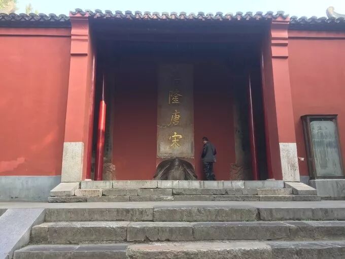 过了文武方门,让人意外的是,竟然有康熙帝手书的碑刻,石碑上书「治隆唐宋」四个鎏金大字,意思是明太祖朱元璋治国方略超过了唐太宗李世民和宋太祖赵匡胤。要知道,大清的江山是从老朱家抢走的,爱新觉罗和老朱家是不共戴天啊,那么康熙帝为何如此高抬命明太祖朱元璋?据考,清朝刚统治,康熙执政之初,汉人不服满人统治,在这样的历史背景下,康熙深知,光靠高压政策是不行的,还须依靠汉人。所以,康熙在6次南巡中,5次拜谒明孝陵。此碑由曹雪芹的祖父、当时的“江宁织造”郎中曹寅刻立。