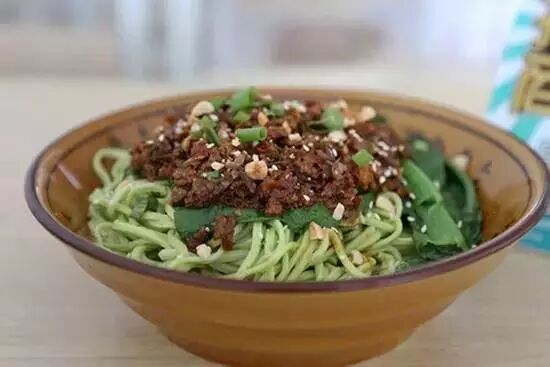流行于川西地区风味小吃。采用上等面粉加菠菜汁和鸡蛋清调成极硬的浅绿色水调面团,揉熟后用手工擀成面条,对叠多次,切成柳叶形或细面条。青菠面色泽碧绿,面条筋而韧,绵而滑,汤鲜味美,为四川面食中的上品。