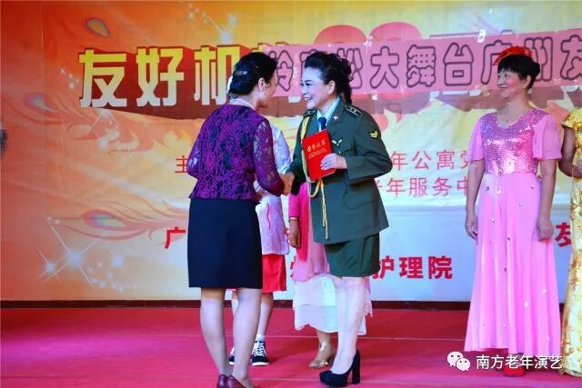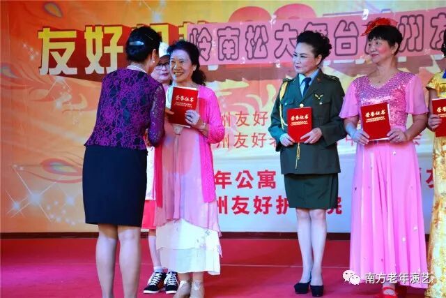 最后,为了表达对十支艺术团队的感谢,友好公寓为十支参加表演的团队开出了公益演出的证明,吴长香女士也代表岭南松大舞台特意给各团颁发了特别制作的荣誉证书,以作鼓励!