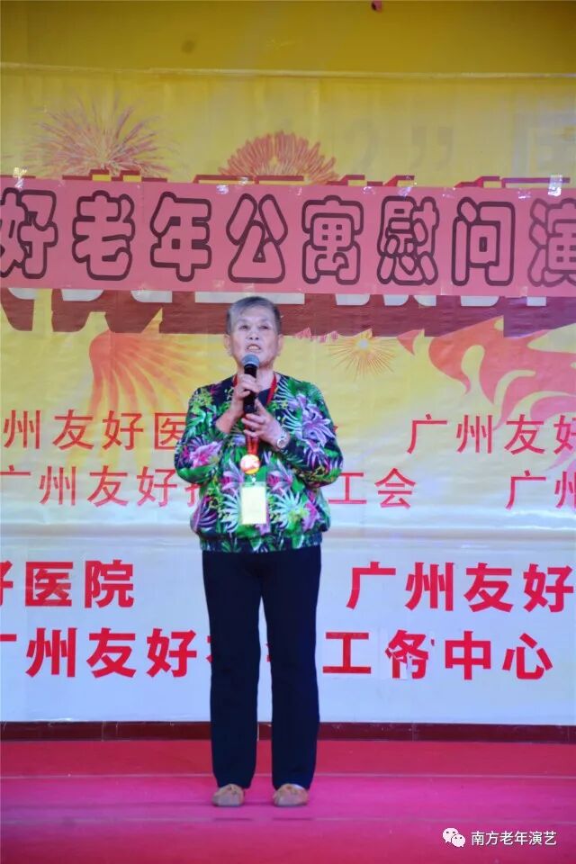 岭南松大舞台本次慰问演出的负责人吴长香女士、友好老年公寓常务院长张慧清女士及公寓长者代表分别上台发言。吴长香说:“岭南松大舞台是老年人的表演的舞台,同时表演的也是老年人喜欢的节目,只要节目能博长者们的喜欢,就是对我们最大的鼓励。随后,张慧清和长者代表表达了对岭南松大舞台和今天前来表演所有演员的感谢。张慧清还代表公寓授予岭南松大舞台牌匾,吴长香代表受领。