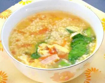 原料:小米、肉馅、香菜、西红柿、虾
