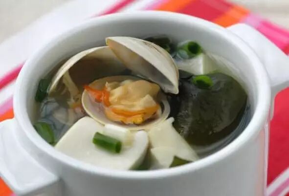 ❶ 蛤蜊买回来,泡在清水中,水里加一小勺盐,滴几滴食用油,让蛤蜊把肚中的泥沙吐尽。海带结,洗净在清水里泡会儿,捞出。取一锅子,锅中注入清水,放入少许姜丝,把海带结放入煮开后转小火煮10分钟;