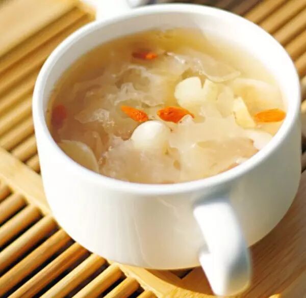 ❷ 莲子最早放入,煮的时间长吃起来更加软糯;银耳在第二位放入,煮的时间长些胶质会被煮出,这样的汤羹更稠,喝起来更顺渴。百合和枸杞易熟,所以晚放进去。