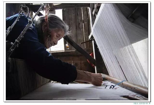 梭子快速穿动,横条与竖条线紧扣一起,随着一阵阵脚踏声,一块新布渐渐织成……这是老式织布机的操作流程。老式织布机,一般为木制。除了织布机,织土布从扎花、谈话、纺纱、浆纱到织成布匹,大约需要三十多道工序。工艺繁杂,其中织布抛梭难度最大,手脚配合不协调,抛梭用力不恰当,就会截断经纱。土布一般为纯白色,也有将纱染成各种颜色,织造成花布的。如今织布机退出了生活舞台,人们怀念的是那份难以割舍的情感,还有对母辈深深的思念。