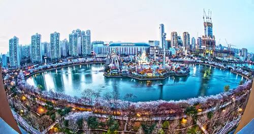 石村湖坐落在繁华的首尔蚕室,周边高耸的现代化建筑并没有让石村湖显得格格不入,反而造就了世外桃源般的独特意境。四月中旬,沿湖边栽种的樱花开始竞相绽放,整个石村湖如同镶上粉色的花环。待到夜幕降临、华灯初上,霓虹灯下的樱花石村湖呈现出另一番醉人景色。韩剧《最佳爱情》中车胜元向孔孝真告白的地方就是这里。缤纷飞舞的樱花、微波粼粼的湖面,一起来感受韩剧的浪漫吧!