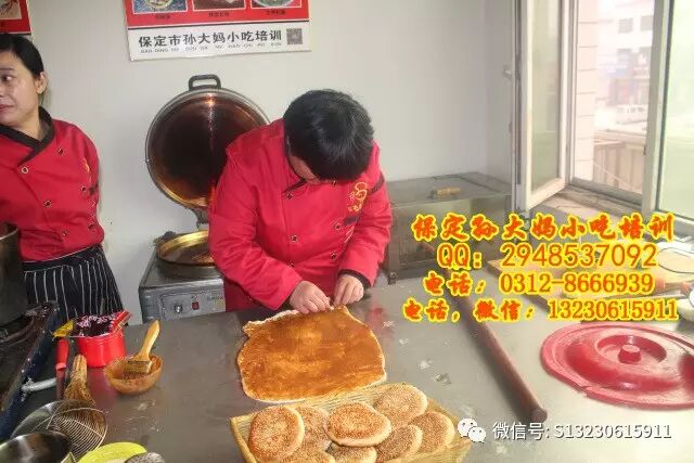 保定孙大妈小吃培训班项目:油酥烧饼,肉夹馍,锅魁,椒盐烧饼,老北京麻汁酱烧饼,南京油酥烧饼,缸炉烧饼,龙须金丝饼,河间火烧,葱花饼,葱油饼,千层饼,香掉牙千层饼,白丹饼,家常饼,独一味鸡蛋饼,新式热狗,蛋挞烧饼等面食培训。