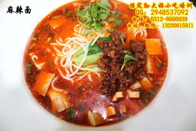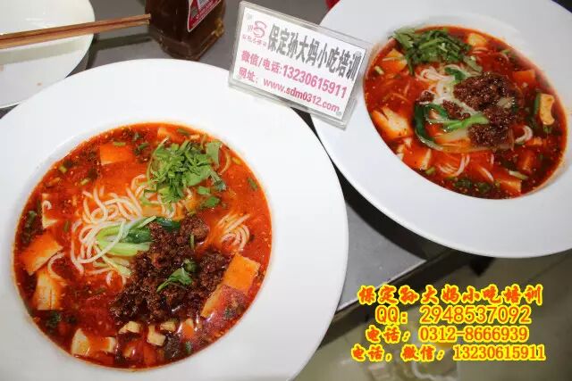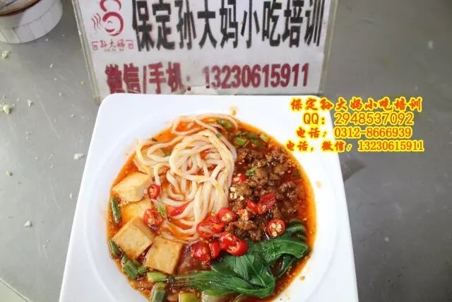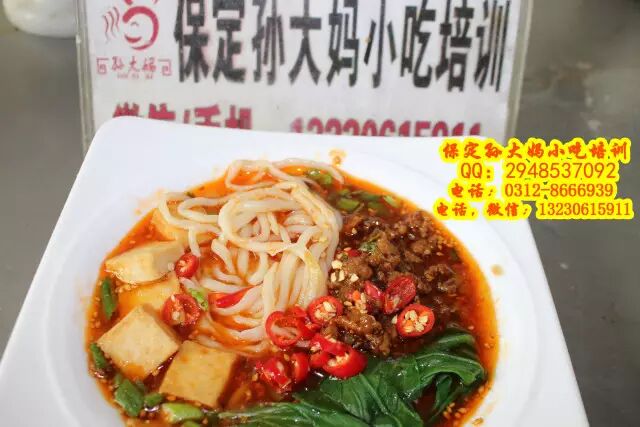 保定孙大妈小吃培训班项目:兰州拉面、安徽板面、重庆小面、担担面、臊子面、饸饹面、排骨面、土豆粉、肉丝面、油泼面、饸饹面、过桥米线、酸辣粉、一根面、山西刀削面、河南烩面、热干面、疙瘩汤、凉面、手擀面、肥肠面、排骨面、鸡块面、炒面、焖面、香辣面、麻辣面、凉面、素炒面、肉炒面等面食培训。