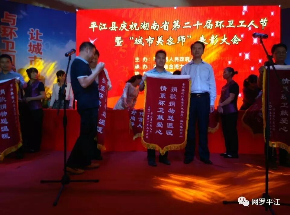 上图为平江县人民政府县长为何老师颁发锦旗