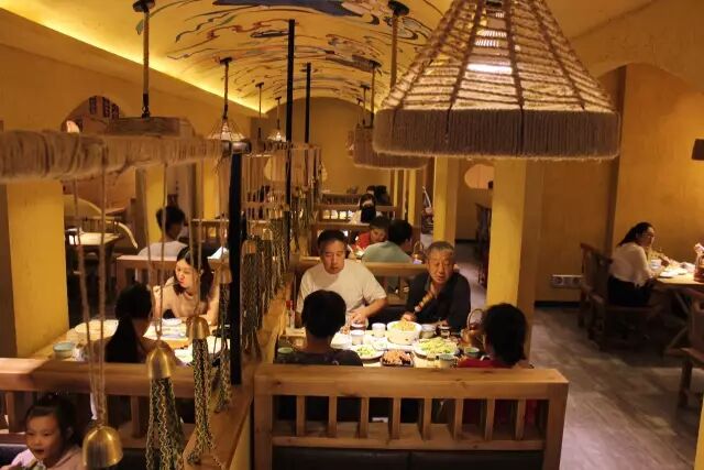这些西域特色美食加上沙漠黄主打色调,伴以沙丘状餐桌围板;洞窟形墙饰,驼影婆娑驼铃悠扬……这一切恍如置身沙漠绿洲侧畔品尝西域美味佳肴。