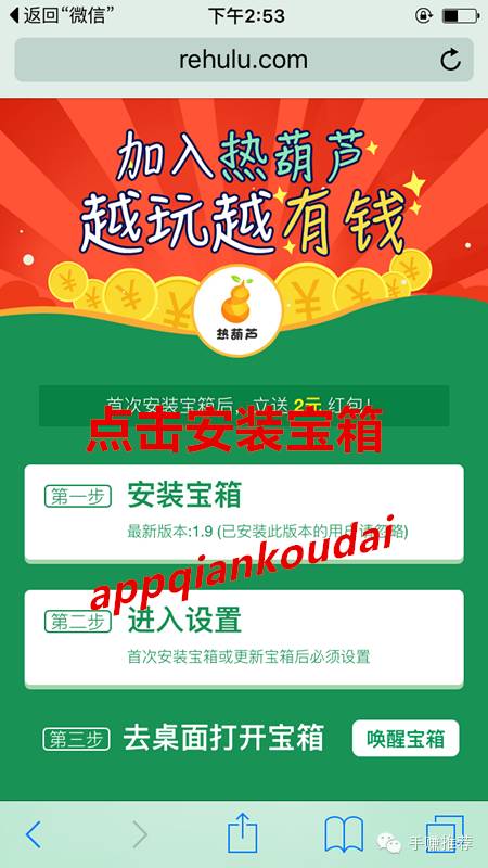 1.长按图中二维码识别图中二维码下载热葫芦