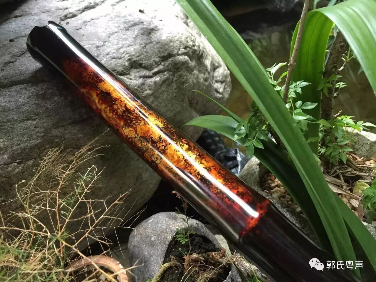也试了下郭老师的新作,外表全生漆的G调UV口桂竹南箫,我可以说见证了这支南箫的“成长”,言之“蜕变”也毫不夸张。最初的遇见可谓“其貌不扬”,没什么引人注目的亮点,虽然竹材很好,但是饱经沧桑,已经有些裂纹,一般人估计不会相中它,按照郭老师所说,这支材料够老,材质够好,制作出来也必定有不断提升的空间,加之手头上没有自用的G调南箫,所以这支南箫可以作为自己今后的装备。